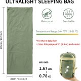 Introducing the NewDoar Ultralight Backpacking Sleeping Bag, the perfect companion for your outdoor adventures. Designed for comfort and convenience, this sleeping bag is ideal for temperatures ranging from 50-70°F, making it versatile for various camping conditions. Weighing only 1.5lbs, it is lightweight and compact, making it easy to carry on hiking trips or camping expeditions.